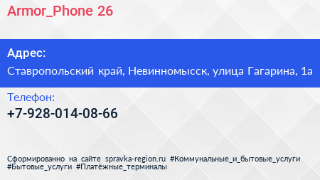 Armor_Phone.26 по адресу Ставропольский край, Невинномысск, улица Гагарина, 1а в дальнейшем Организация, размещена в следующих категориях: