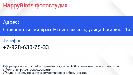 HappyBirds, фотостудия по адресу Ставропольский край, Невинномысск, улица Гагарина, 1а в дальнейшем Организация, размещена в следующих категориях: