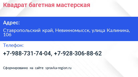 Квадрат, багетная мастерская по адресу Ставропольский край, Невинномысск, улица Калинина, 106 в дальнейшем Организация, размещена в следующих категориях: