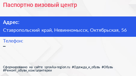 Паспортно-визовый центр по адресу Ставропольский край, Невинномысск, Октябрьская, 56 в дальнейшем Организация, размещена в следующих категориях: