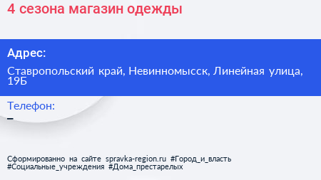 4 сезона, магазин одежды по адресу Ставропольский край, Невинномысск, Линейная улица, 19Б в дальнейшем Организация, размещена в следующих категориях: