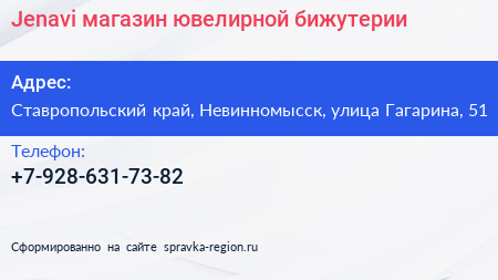 Jenavi, магазин ювелирной бижутерии по адресу Ставропольский край, Невинномысск, улица Гагарина, 51 в дальнейшем Организация, размещена в следующих категориях: