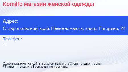 Komilfo, магазин женской одежды по адресу Ставропольский край, Невинномысск, улица Гагарина, 24 в дальнейшем Организация, размещена в следующих категориях: