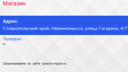 Магазин по адресу Ставропольский край, Невинномысск, улица Гагарина, 4/7 в дальнейшем Организация, размещена в следующих категориях: