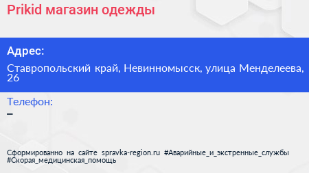 Prikid, магазин одежды по адресу Ставропольский край, Невинномысск, улица Менделеева, 26 в дальнейшем Организация, размещена в следующих категориях: