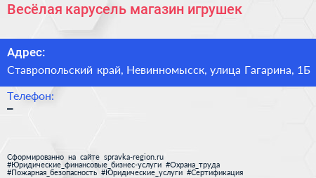 Весёлая карусель, магазин игрушек по адресу Ставропольский край, Невинномысск, улица Гагарина, 1Б в дальнейшем Организация, размещена в следующих категориях: