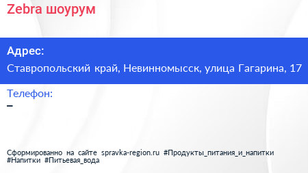 Zebra, шоурум по адресу Ставропольский край, Невинномысск, улица Гагарина, 17 в дальнейшем Организация, размещена в следующих категориях: