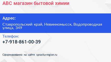 ABC, магазин бытовой химии по адресу Ставропольский край, Невинномысск, Водопроводная улица, 349 в дальнейшем Организация, размещена в следующих категориях: