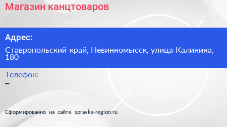 Магазин канцтоваров по адресу Ставропольский край, Невинномысск, улица Калинина, 180 в дальнейшем Организация, размещена в следующих категориях: