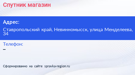 Спутник, магазин по адресу Ставропольский край, Невинномысск, улица Менделеева, 34 в дальнейшем Организация, размещена в следующих категориях: