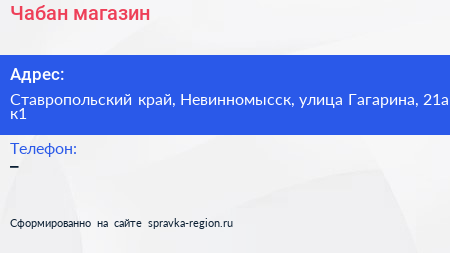 Чабан, магазин по адресу Ставропольский край, Невинномысск, улица Гагарина, 21а к1 в дальнейшем Организация, размещена в следующих категориях: