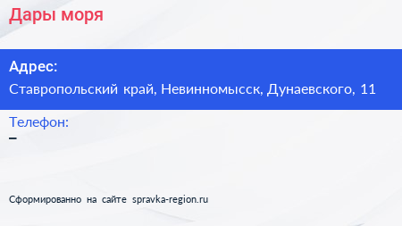 Дары моря по адресу Ставропольский край, Невинномысск, Дунаевского, 11 в дальнейшем Организация, размещена в следующих категориях: