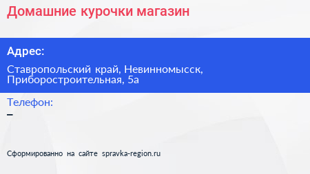 Домашние курочки, магазин по адресу Ставропольский край, Невинномысск, Приборостроительная, 5а в дальнейшем Организация, размещена в следующих категориях: