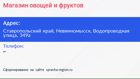 Магазин овощей и фруктов по адресу Ставропольский край, Невинномысск, Водопроводная улица, 349а в дальнейшем Организация, размещена в следующих категориях: