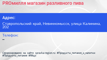 PROмилля, магазин разливного пива по адресу Ставропольский край, Невинномысск, улица Калинина, 202 в дальнейшем Организация, размещена в следующих категориях: