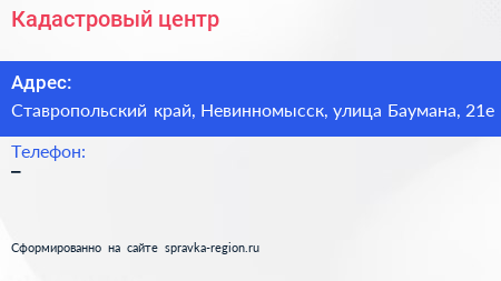 Кадастровый центр по адресу Ставропольский край, Невинномысск, улица Баумана, 21е в дальнейшем Организация, размещена в следующих категориях: