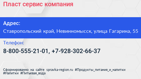 Пласт сервис, компания по адресу Ставропольский край, Невинномысск, улица Гагарина, 55 в дальнейшем Организация, размещена в следующих категориях: