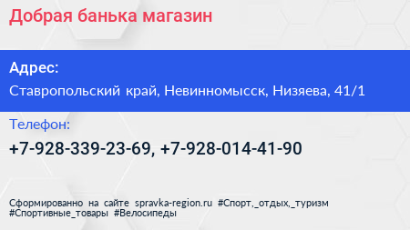 Добрая банька, магазин по адресу Ставропольский край, Невинномысск, Низяева, 41/1 в дальнейшем Организация, размещена в следующих категориях: