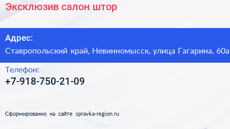 Эксклюзив, салон штор по адресу Ставропольский край, Невинномысск, улица Гагарина, 60а в дальнейшем Организация, размещена в следующих категориях: