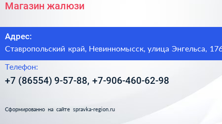 Магазин жалюзи по адресу Ставропольский край, Невинномысск, улица Энгельса, 176 в дальнейшем Организация, размещена в следующих категориях: