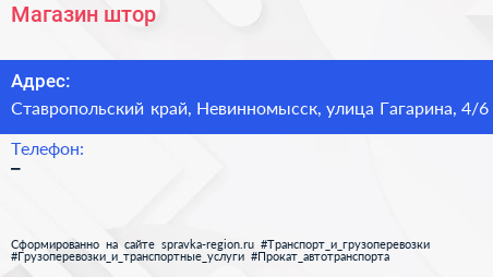 Магазин штор по адресу Ставропольский край, Невинномысск, улица Гагарина, 4/6 в дальнейшем Организация, размещена в следующих категориях: