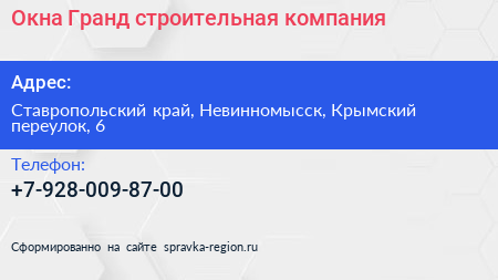 Окна Гранд, строительная компания по адресу Ставропольский край, Невинномысск, Крымский переулок, 6 в дальнейшем Организация, размещена в следующих категориях: