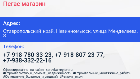 Пегас, магазин по адресу Ставропольский край, Невинномысск, улица Менделеева, 3 в дальнейшем Организация, размещена в следующих категориях: