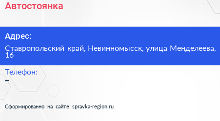 Автостоянка по адресу Ставропольский край, Невинномысск, улица Менделеева, 16 в дальнейшем Организация, размещена в следующих категориях:
