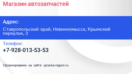 Магазин автозапчастей по адресу Ставропольский край, Невинномысск, Крымский переулок, 3 в дальнейшем Организация, размещена в следующих категориях: