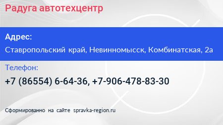 Радуга, автотехцентр по адресу Ставропольский край, Невинномысск, Комбинатская, 2а в дальнейшем Организация, размещена в следующих категориях: