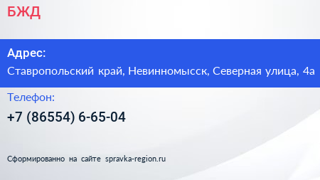БЖД по адресу Ставропольский край, Невинномысск, Северная улица, 4а в дальнейшем Организация, размещена в следующих категориях: