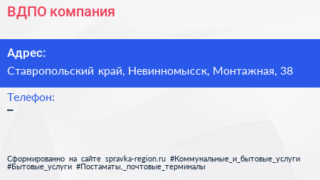 ВДПО, компания по адресу Ставропольский край, Невинномысск, Монтажная, 38 в дальнейшем Организация, размещена в следующих категориях: