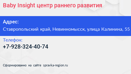 Baby Insight, центр раннего развития по адресу Ставропольский край, Невинномысск, улица Калинина, 55 в дальнейшем Организация, размещена в следующих категориях: