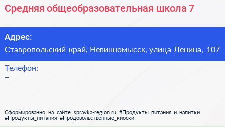 Средняя общеобразовательная школа №7 по адресу Ставропольский край, Невинномысск, улица Ленина, 107 в дальнейшем Организация, размещена в следующих категориях:
