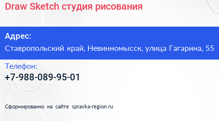 Draw & Sketch, студия рисования по адресу Ставропольский край, Невинномысск, улица Гагарина, 55 в дальнейшем Организация, размещена в следующих категориях: