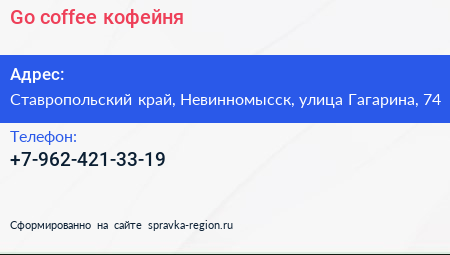 Go coffee, кофейня по адресу Ставропольский край, Невинномысск, улица Гагарина, 74 в дальнейшем Организация, размещена в следующих категориях: