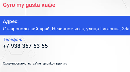 Gyro my gusta, кафе по адресу Ставропольский край, Невинномысск, улица Гагарина, 34а в дальнейшем Организация, размещена в следующих категориях: