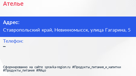 Ателье по адресу Ставропольский край, Невинномысск, улица Гагарина, 5 в дальнейшем Организация, размещена в следующих категориях:
