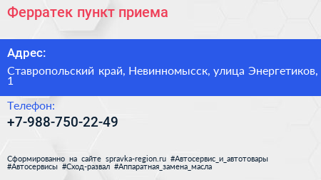 Ферратек, пункт приема по адресу Ставропольский край, Невинномысск, улица Энергетиков, 1 в дальнейшем Организация, размещена в следующих категориях: