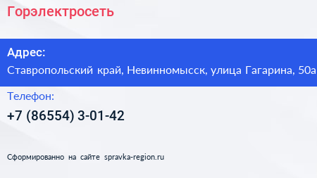 Горэлектросеть по адресу Ставропольский край, Невинномысск, улица Гагарина, 50а в дальнейшем Организация, размещена в следующих категориях: