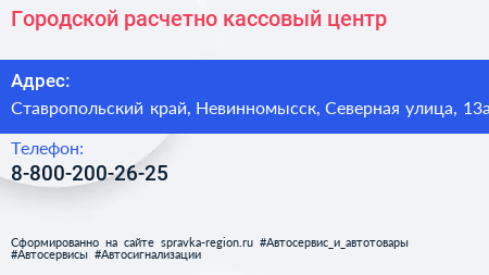 Городской расчетно-кассовый центр по адресу Ставропольский край, Невинномысск, Северная улица, 13а в дальнейшем Организация, размещена в следующих категориях: