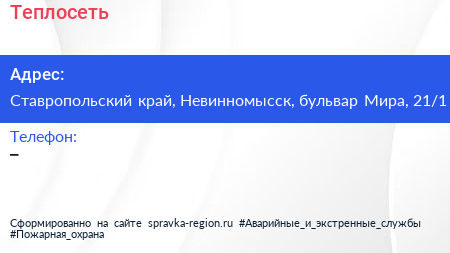 Теплосеть по адресу Ставропольский край, Невинномысск, бульвар Мира, 21/1 в дальнейшем Организация, размещена в следующих категориях: