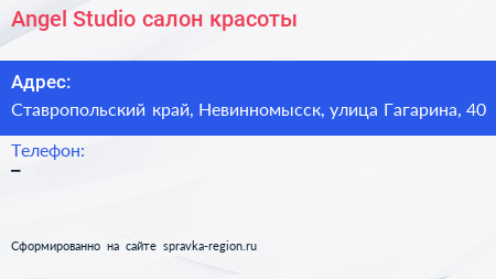 Angel Studio, салон красоты по адресу Ставропольский край, Невинномысск, улица Гагарина, 40 в дальнейшем Организация, размещена в следующих категориях: