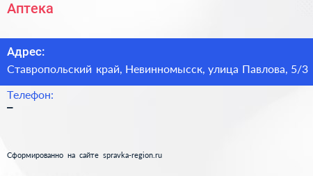 Аптека по адресу Ставропольский край, Невинномысск, улица Павлова, 5/3 в дальнейшем Организация, размещена в следующих категориях: