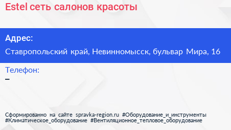 Estel, сеть салонов красоты по адресу Ставропольский край, Невинномысск, бульвар Мира, 16 в дальнейшем Организация, размещена в следующих категориях:
