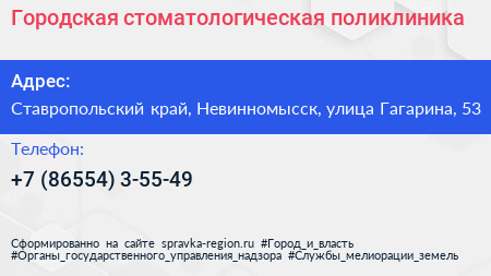 Городская стоматологическая поликлиника по адресу Ставропольский край, Невинномысск, улица Гагарина, 53 в дальнейшем Организация, размещена в следующих категориях: