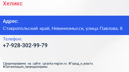 Хеликс по адресу Ставропольский край, Невинномысск, улица Павлова, 8 в дальнейшем Организация, размещена в следующих категориях: