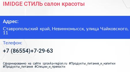 IMIDGE-СТИЛЬ, салон красоты по адресу Ставропольский край, Невинномысск, улица Чайковского, 11 в дальнейшем Организация, размещена в следующих категориях: