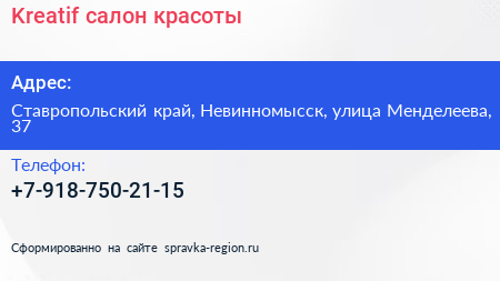 Kreatif, салон красоты по адресу Ставропольский край, Невинномысск, улица Менделеева, 37 в дальнейшем Организация, размещена в следующих категориях: