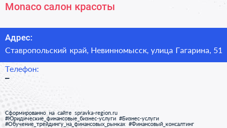 Monaco, салон красоты по адресу Ставропольский край, Невинномысск, улица Гагарина, 51 в дальнейшем Организация, размещена в следующих категориях: